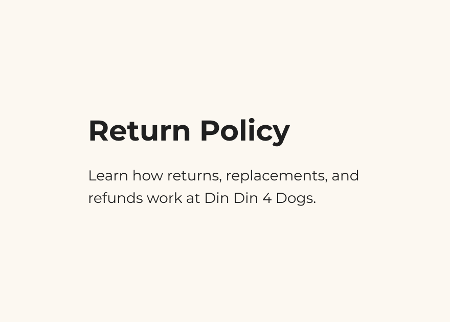 At Din Din 4 Dogs, we strive to provide high-quality products for your furry friends. If you are not completely satisfied with your purchase, we offer a hassle-free return policy to ensure your satisfaction. Please review the following guidelines: